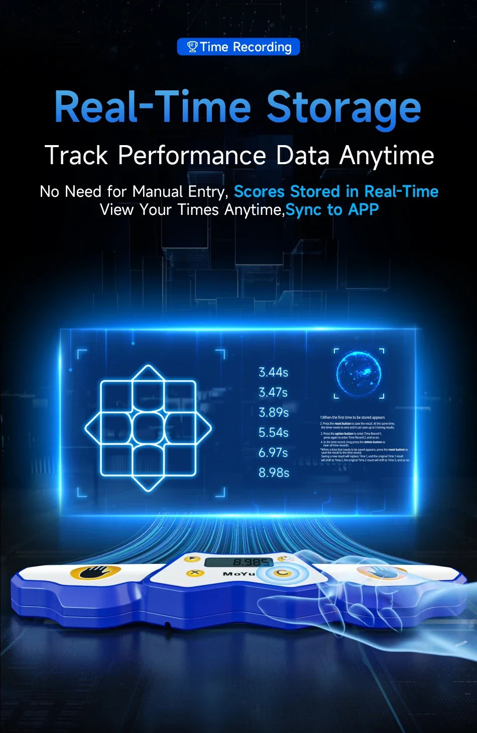 The MoYu AI Bluetooth Timer is a must-have accessory for serious speedcubers looking to elevate their practice sessions. With an impressive timing accuracy of 0.001 seconds, this timer ensures precise tracking of your solving times. It connects seamlessly to the WCU Cube Mobile App, available on both iOS and Android, allowing you to analyze your performance and monitor your progress over time.