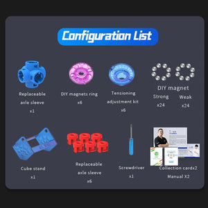 Discover the DianSheng MS3X, a cutting-edge 3x3 cube designed for ultimate versatility. This flagship model features a unique spiderweb pattern on the pieces, along with advanced tension and compression adjustments and adjustable torpedoes. Magnets in the corner feet and centers provide a unique repelling effect halfway through each turn, enhancing stability and control.