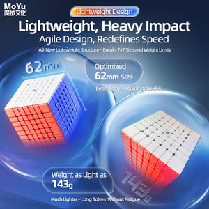 The MoYu AoFu V5 7x7 Series represents the latest evolution in MoYu’s legendary big cube lineup. Designed for top-tier speedcubers and enthusiasts alike, each version of the AoFu V5 pushes performance to new heights combining compact design, superior control, and cutting edge magnetic systems for unmatched stability and feel.