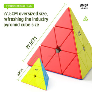 The QiYi QiMing Plus Pyraminx is a massive 27.5 cm Pyraminx, offering a unique challenge with its giant size. Despite its large dimensions, it turns smoothly and is built like a speed cube. Perfect for display, teaching, or as a distinctive gift, this Pyraminx is a great addition to any cuber's collection.