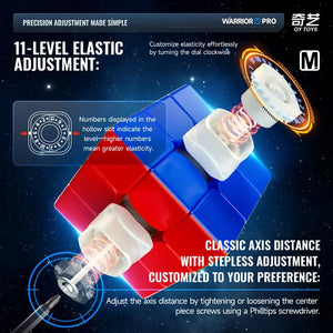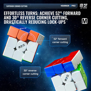 The QiYi Warrior M Pro is a compact 55.5mm magnetic 3x3 built for speed and control. With 11 spring compression settings, this cube offers basic customization and decent corner cutting abilities. Suitable for beginners and seasoned speedcubers.