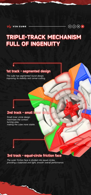 The Vin Cube 4x4, designed by former world record holder Haixu Zhang (张海旭), takes innovation to the next level in 4x4 speedcubing. This cube is engineered for high performance, boasting primary internals and improved corner-cutting ability. With its smooth feel and fluid turning, the Vin Cube delivers a satisfying experience, particularly for fans of the MGC 4x4. Built to meet the needs of competitive cubers, this puzzle combines precision with stability, making it an excellent choice for anyone looking to improve their times.